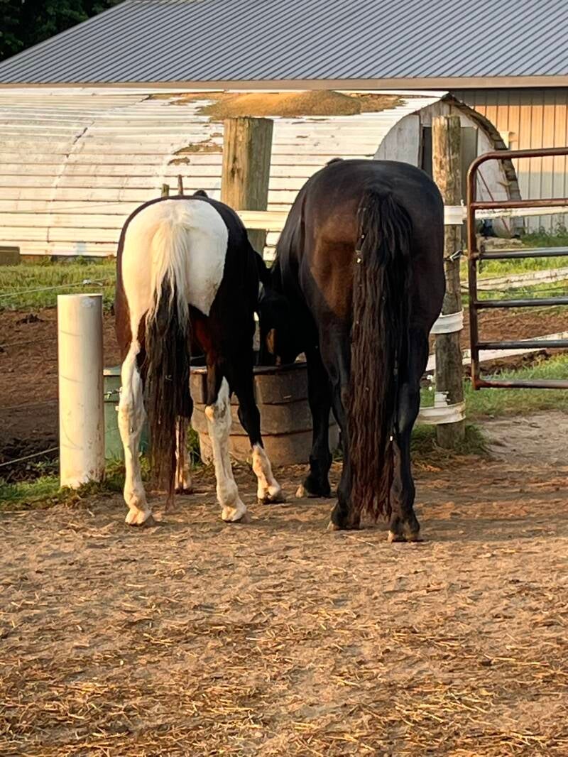 Target quite enjoys showing his brother the rules and keeping him in line, but he also demonstrates an unbelievable amount of patience for his sweet, affectionate baby brother, who often lacks a sense of personal space. In fact, we once saw Titan gently eating hay ... directly from Target's mouth! Target simply rolled his eyes and continued munching, seemingly unbothered.